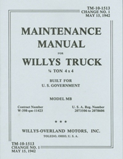 Dies ist ein ORIGINAL NACHDRUCK des Maintenance Manual von 1942 der WILLYS-Overland Motors Inc.